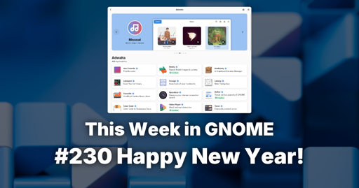 petsoi@discuss.tchncs.deMEnglish · 20 days agoThis Week in Gnome #230 Happy New Year!plus-squarethisweek.gnome.orgexternal-linkmessage-square0linkfedilinkarrow-up11arrow-down10