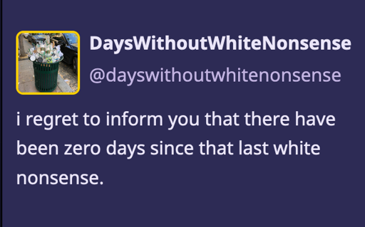 Basically, I have no reason to get involved. However, I don’t want to be part of the problem. So if you spoonfeed me information I can use to make life better for “the blackness” (I’m very confused about the terminology), I will happily read it and try to remember it.