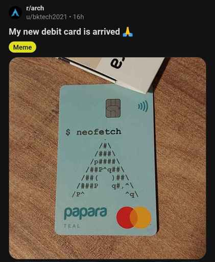 arrow-up12arrow-down1imageNew Debit Cardsh.itjust.worksrootww@sh.itjust.works to linuxmemes@lemmy.worldEnglish · 1 year agomessage-square1linkfedilink