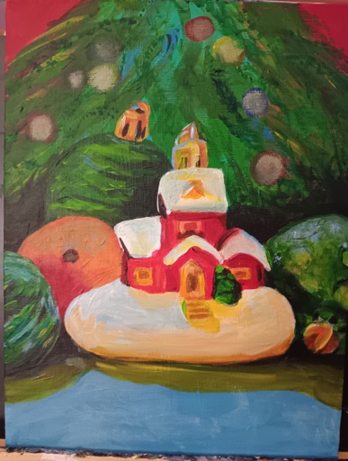 It is still very much a work in progress. I’ve decided I don’t like the tree in the background. I plan to paint over it and I’m looking for advice on what to put there instead that will balance the colors and composition.