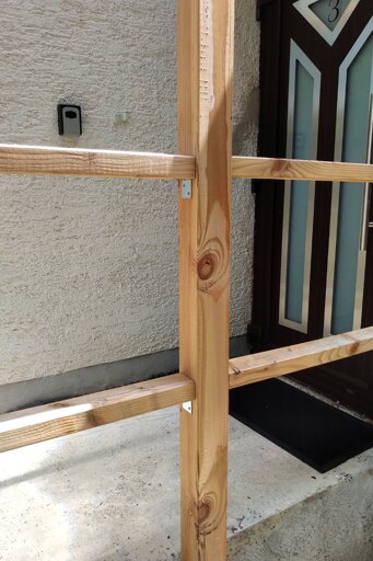 ich habe ein Vordach gebaut und dies ist das Geländer.