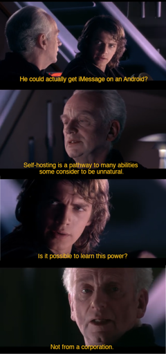 arrow-up1255arrow-down1imageThe story of Darth BlueBubbles the Wiseslrpnk.netmulcahey@lemmy.world to Self-hosting@slrpnk.net · 7 months agomessage-square29linkfedilink