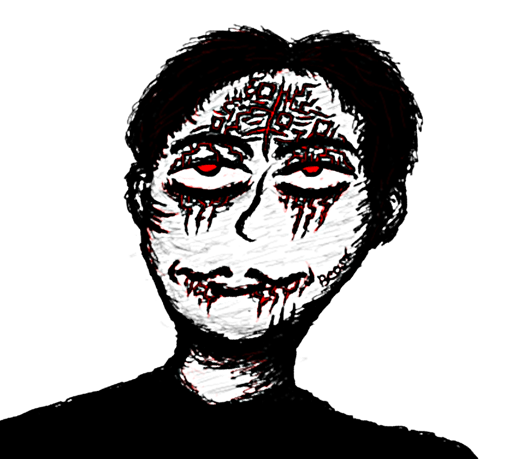 Sort of looks like the guy is corrupted by evil red electric circuits to me, though you probably intended it to be some sort of spiritual corruption.