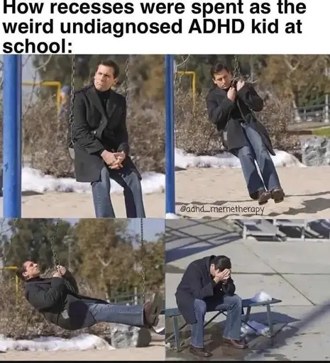 Not adhd but I moved twice a year until high school and never had friends. I used to hate recess and lunch as I was always alone. I used to walk around the perimeter of the playground counting my steps to see what the average steps around playground was per school. I had a notebook with all that info that I found and threw away in my late 30s.