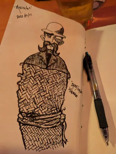 ORbituary@lemmy.dbzer0.com to Art Share🎨@lemmy.worldEnglish · 4 days ago[inktober] Mustache & Weavelemmy.dbzer0.comimagemessage-square6linkfedilinkarrow-up1103arrow-down12file-text