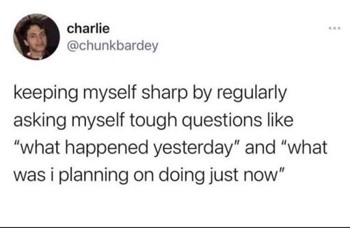 Long term memory is fine, excellent even. Short term memory like a goldfish though.