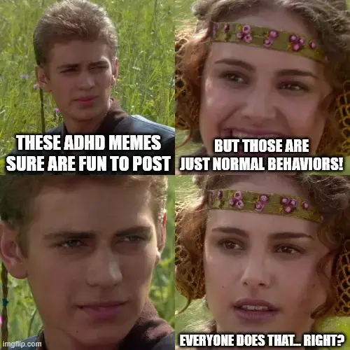 Stamets@lemmy.dbzer0.com to ADHD memes@lemmy.dbzer0.comEnglish · 12 days agoBased off of the numerous "WAIT WHAT" comments I see on my postslemmy.dbzer0.comimagemessage-square37linkfedilinkarrow-up1445arrow-down112