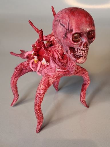 Made from paper, tape, latex, a plastic Halloween skull, Apoxie sculpt. About 7 inches long Sold in 2025