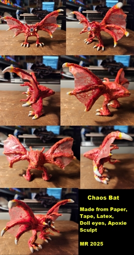 4 Inches tall, 7 across. The skin on the wings is made from cellophane from a snack cake package. Enjoy!