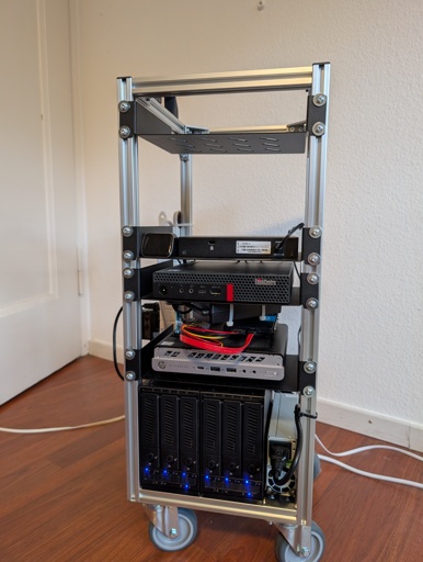 The frame is built with some aluminium extrusions to make it more or less mini rack sized
