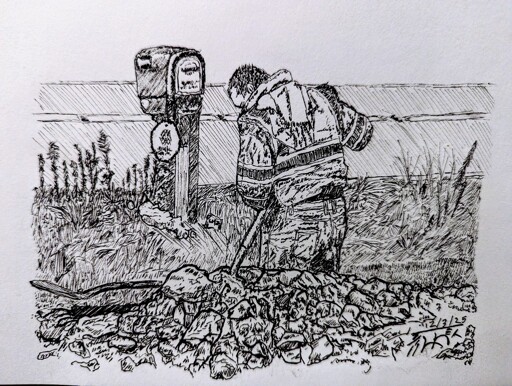 They were digging up the yard to install fiberoptic cable today. I asked the guy if I could take a picture, draw it and send him a copy.