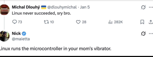 minus-squarejaybone@lemmy.ziplinkfedilinkEnglisharrow-up2·5 days agoI saw a video of someone running Doom on a vibrator.