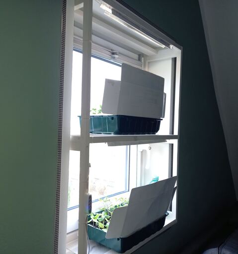 Jetzt beginnt langsam die Jahreszeit, wo man erste Pflanzen vorziehen kann. Da mir dafür nur ein Fenster gen Westen zur Verfügung steht, habe ich letztes Jahr dieses Gestell mit Beleuchtung gebaut.