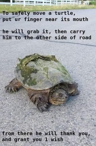 This works especially well with snapping turtles.