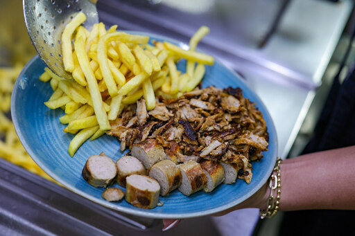 Mich wundert, dass das (griechisches) Gyros und Tsatsiki ist und nix mit (türkischem) Kebab. Ich wüsste hier in Augsburg keinen einzigen Imbiss mit Gyros-Spieß, aber mit Kebap an jeder Straßenecke.