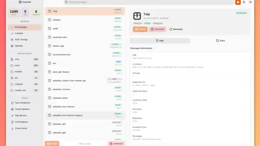 “PacHub provides a GTK4/libadwaita GUI for pacman and AUR, so you can avoid the terminal. PacHub can install/uninstall packages, perform upgrades, and provide