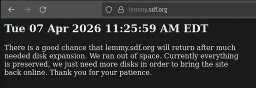 Iced Raktajino@startrek.website to Fediverse@lemmy.worldEnglish · 6 days agoIs lemmy.sdf.org coming back?startrek.websiteimagemessage-square17linkfedilinkarrow-up181arrow-down15file-text