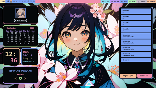 arrow-up131arrow-down1image[niri] nekomatalemmy.worldidiot@lemmy.world to unixporn@lemmy.world · 3 months agomessage-square6linkfedilink