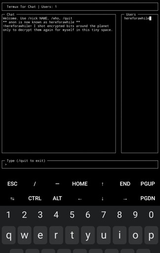hereforawhile@lemmy.mlOPto Selfhosted@lemmy.world•Using Termux to create a tiny selfhosted hidden chat server with E2EE.English3·16 days agoOk,
